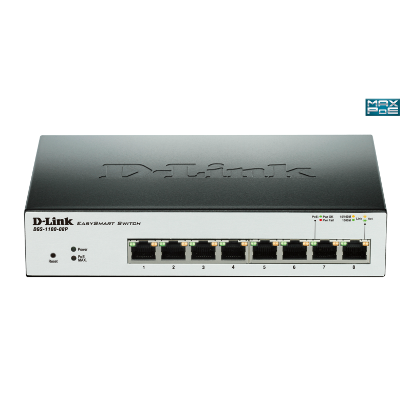 D-Link Smart Managed 8-Port Gigabit Desktop PoE Switch DGS-1100-08P