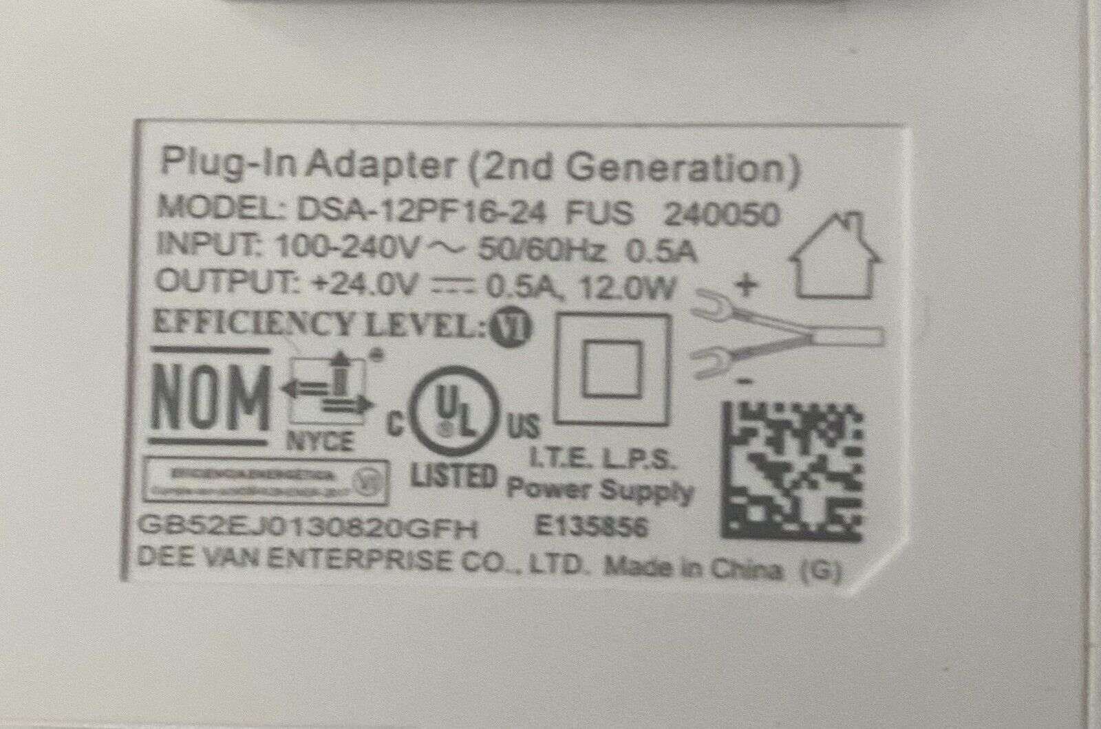 • Power input: 100-240V AC, 50/60Hz, 0.5A / Power output: 24V DC, 0.5A, 12.0W